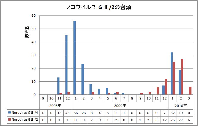 2006b変異型が衰勢にあるともいえ、2010春先からの、GU/4の盛り返しはあらたな変異型の登場を意味しているのではないだろうか。(*6)